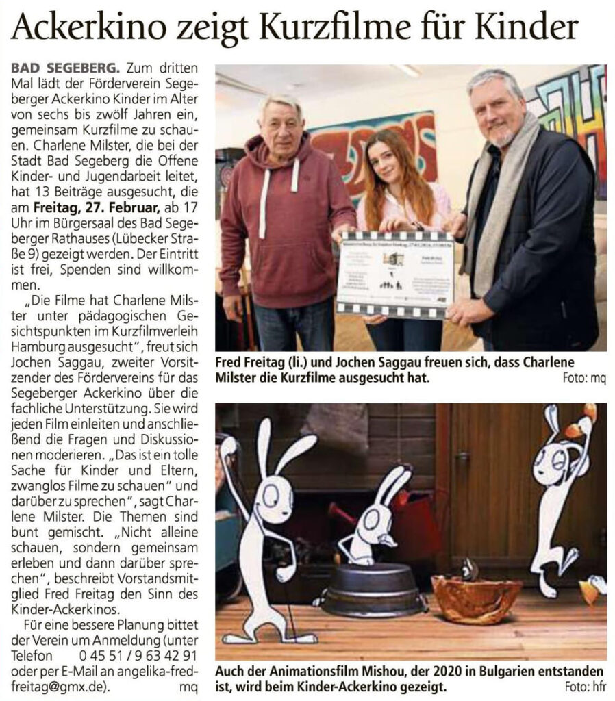 Drittes Ackerkino für Kinder am Freitag, den 27.02.2026, 17.00 Uhr im Bürgersaal!
